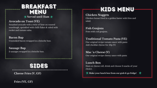 Our on-site menu is subject to change based on availability.